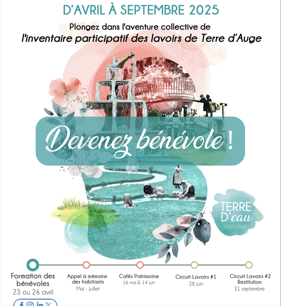 Nous avons relayé l'appel à bénévoles de l'Office du Tourisme de Terre d'Auge dans le cadre de la réalisation d'un inventaire participatif des lavoirs de Terre d'Auge.